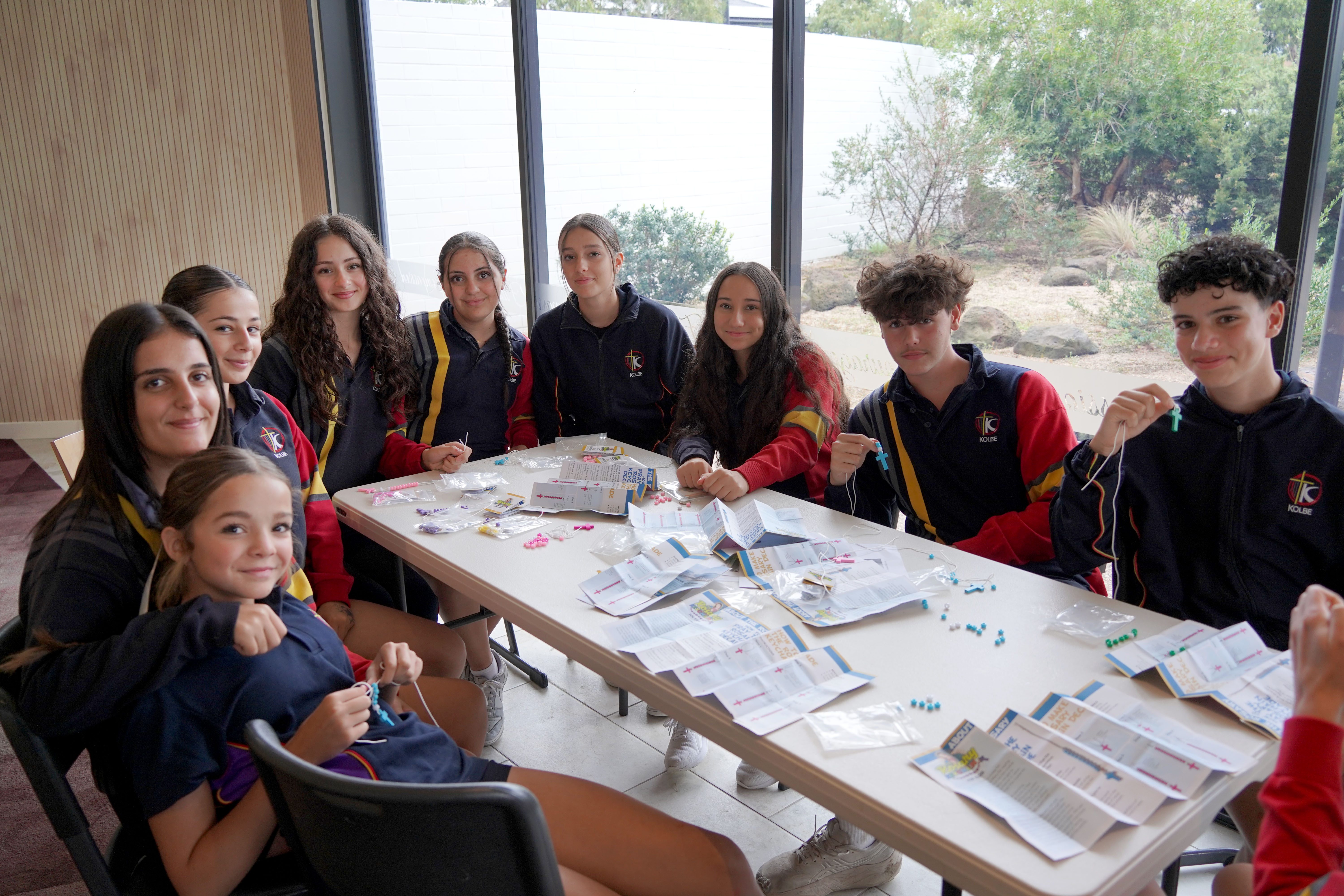 Recently, Kolbe Catholic College celebrated Catholic Education Week with a series of new and engaging activities. Students got hands-on weaving Palm crosses, put their Bible knowledge to the test in a fast-paced quiz, and worked side by side to make rosaries in the Chapel. To end the week, students participated in the exciting AmazinGrace, a school-wide challenge where groups raced to solve puzzles and finish tasks, all about team work and quick thinking.