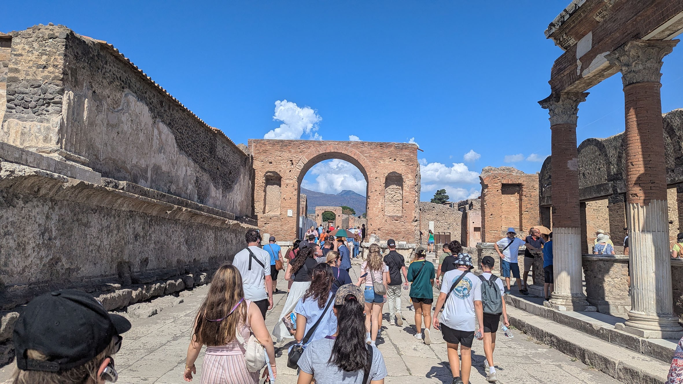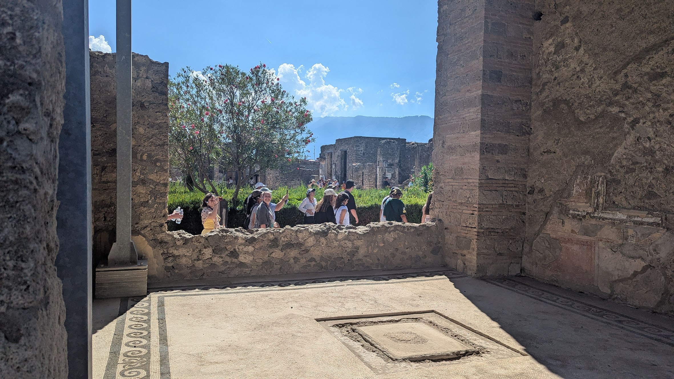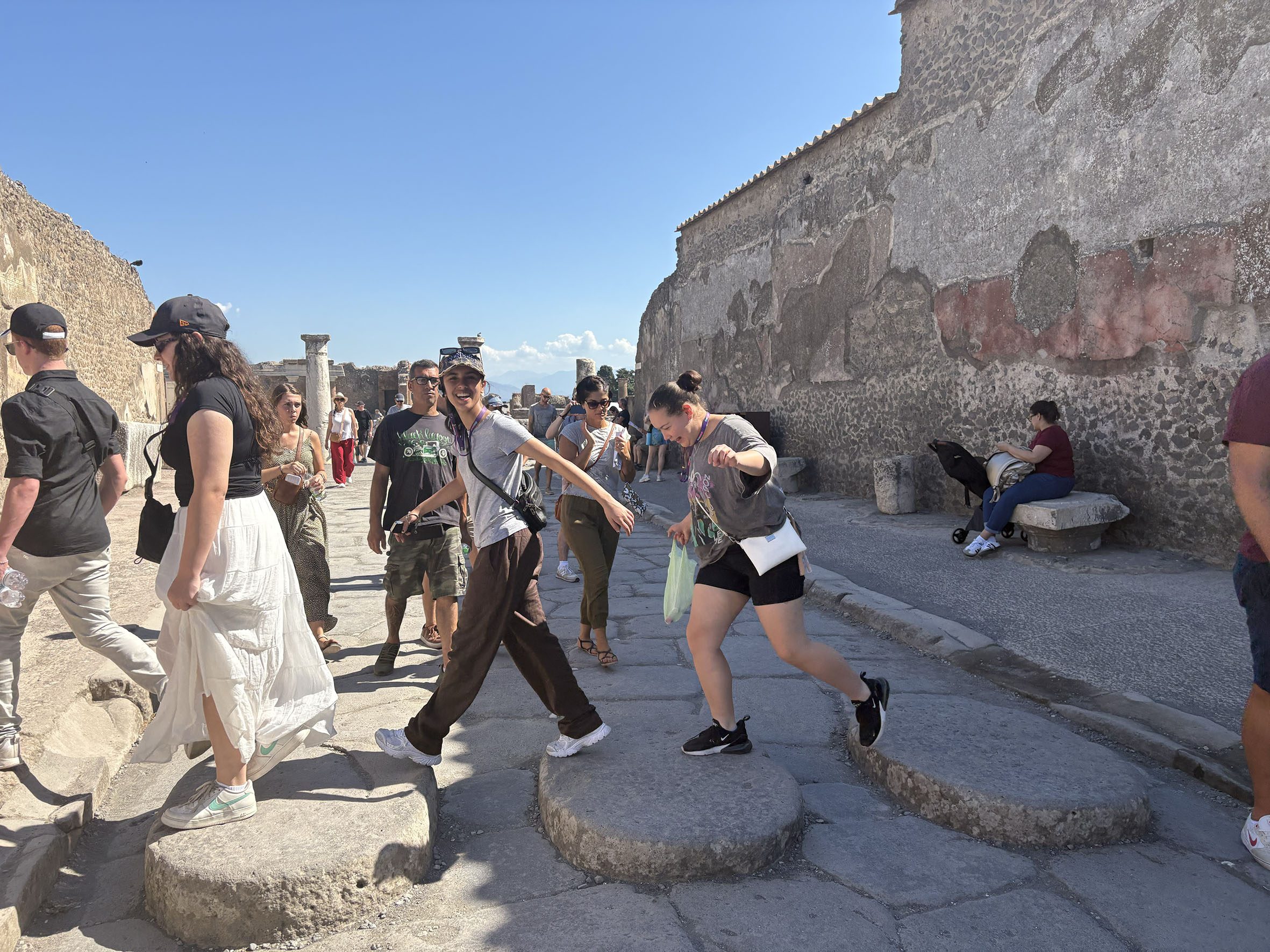 The journey took them next to the well-preserved ruins of Pompeii, where the group walked ancient roads and peeked into homes, witnessing the frozen moments of daily life before the eruption of Mt Vesuvius in 79 CE. Special thanks were extended to their guide, Massimo, for an enlightening experience.