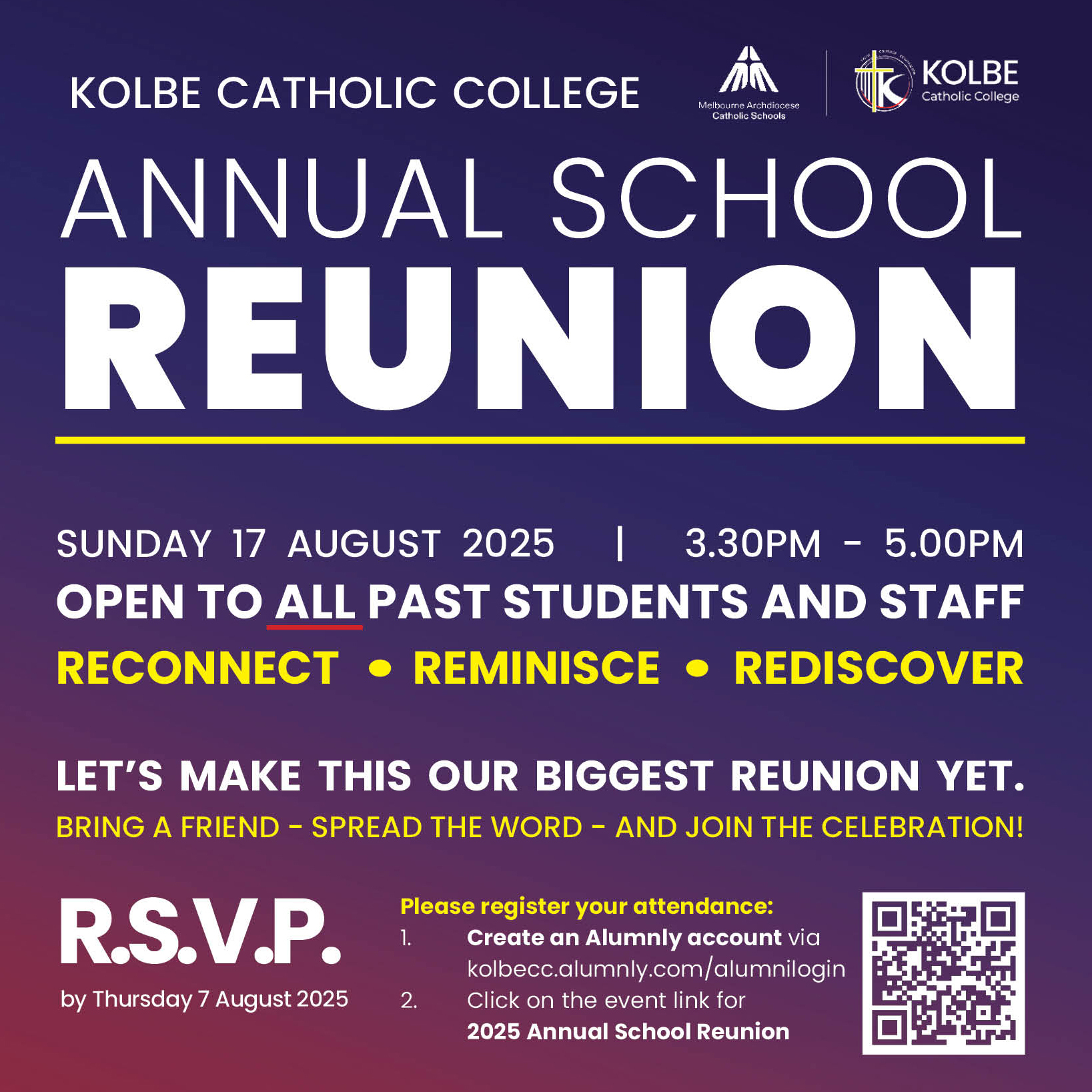 Please register your attendance by scanning the QR code below or by clicking the link provided. https://kolbecc.alumnly.com/al...